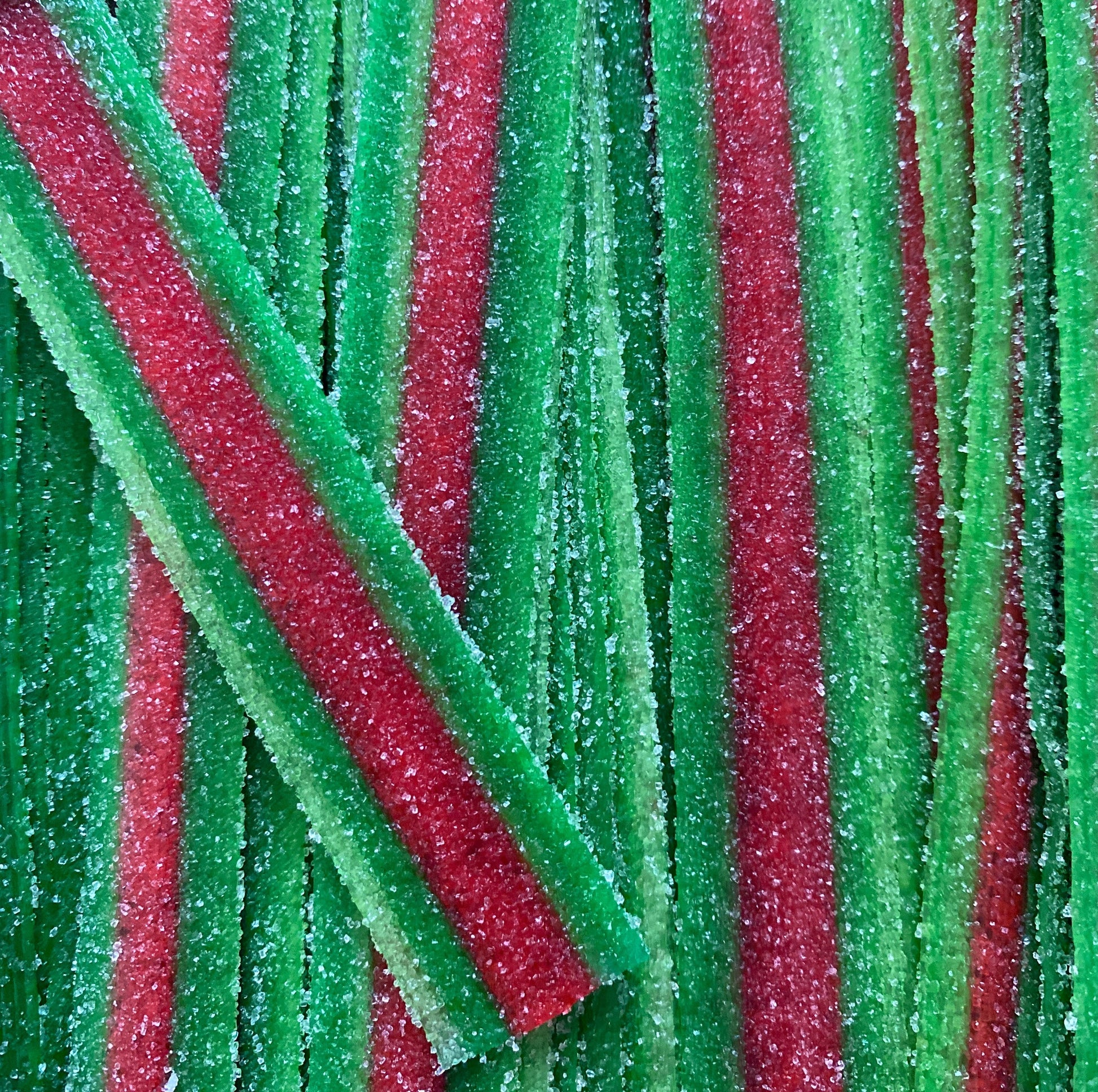 INGREDIENTS : Sirop de glucose, sucre, eau, gélatine de boeuf, amidon modifié de pomme de terre, acidifiants : E330, E270, E296, arômes, colorant E129, agent d'enrobage : cire de carnauba.